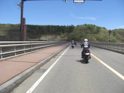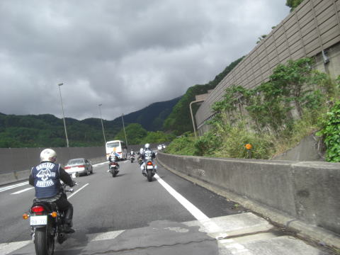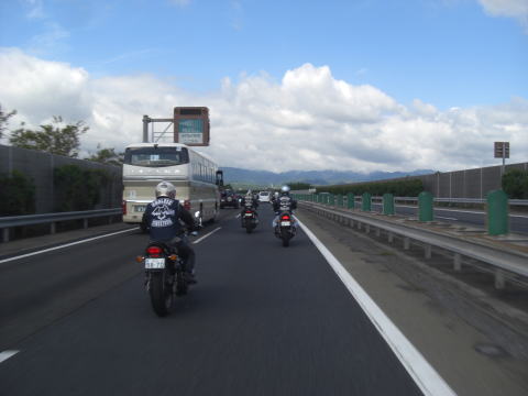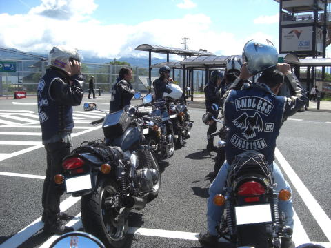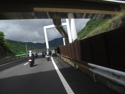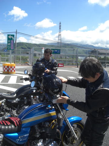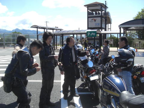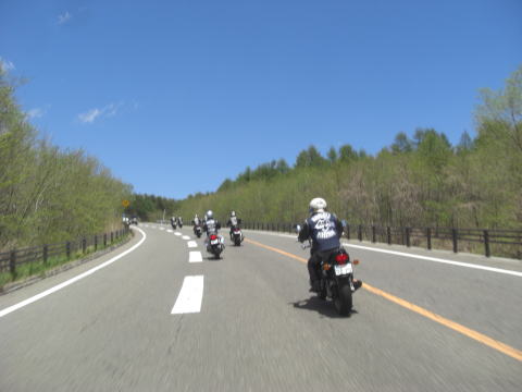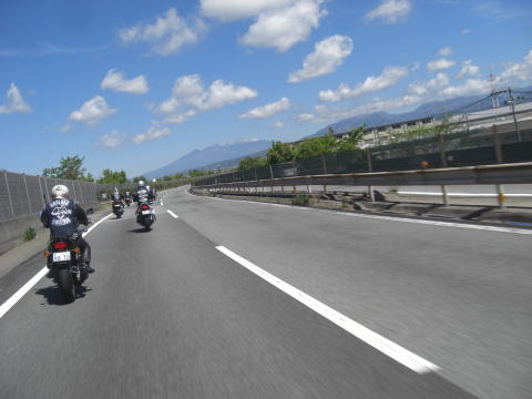 先頭を走るこのお二方も虫の餌食になっていたようで、メットの掃除に余念がありません。 実はワタクシ最後尾にいるせいか、ほとんど被害にあってないんですよね~~ 皆さんがエアーフィルターがわりと言いますか、すみませんね~~ |