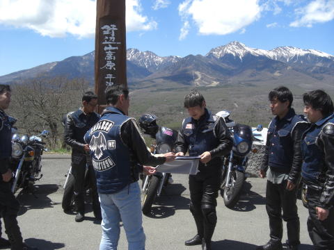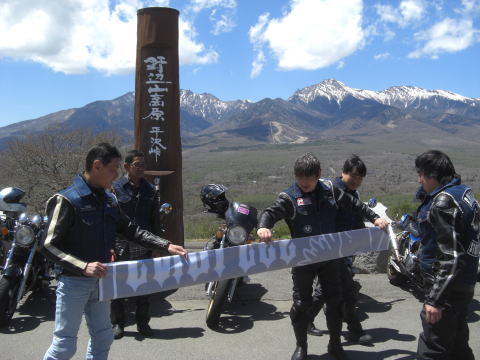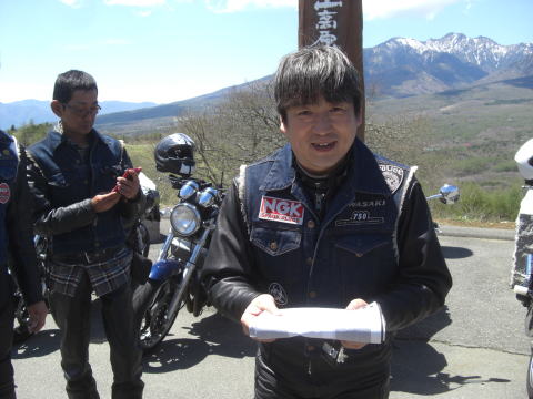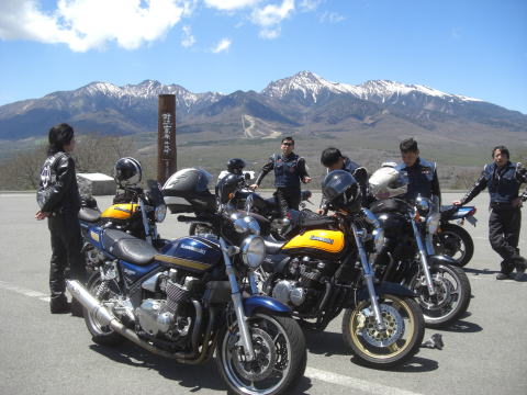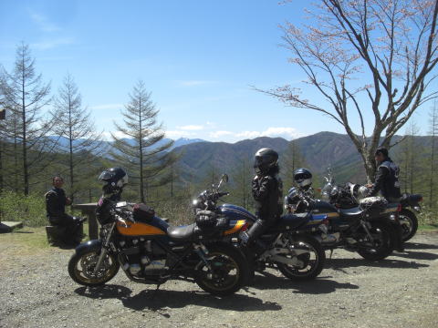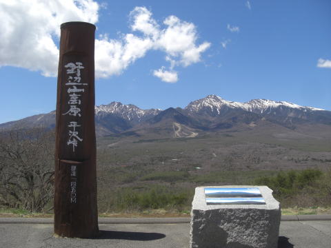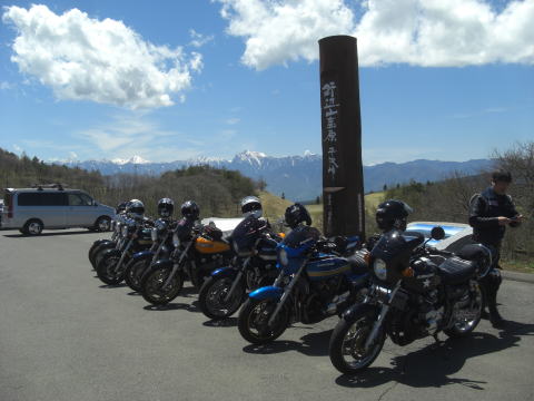 やってきたのは野辺山高原の平沢峠。 ツーリングマップルでも小さく書いてあるだけでメジャーな場所ではないんですが、ここからの大パノラマは逃すわけにはいきません。 ミンナにも見てもらいたくて寄ってみました。 |