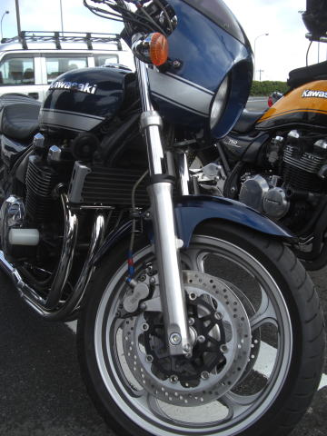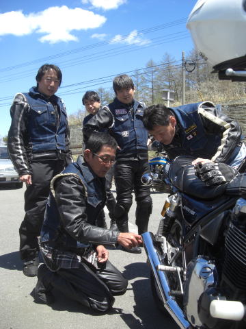 おっ! 今日は見送りでわざわざやってきてくれたフクさん。 こちらはエンジンを開けたので慣らし中です。 実は810CCのエンジンらしく、完全復活したら怖いかも・・・ |