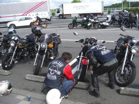 そしてアニキも到着~~ さすがに千葉では出発する頃まで雨が降っていて、「中止連絡」が来るのを待っていたとか。。。 どうしても西から天気が変わっていくのでスミマセン。 |