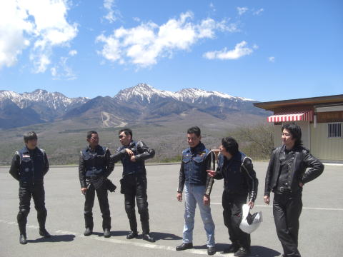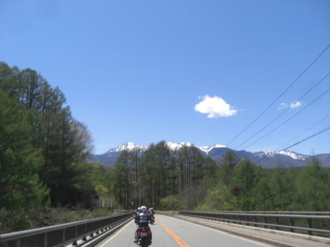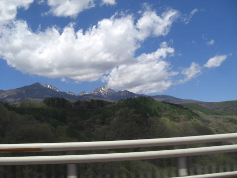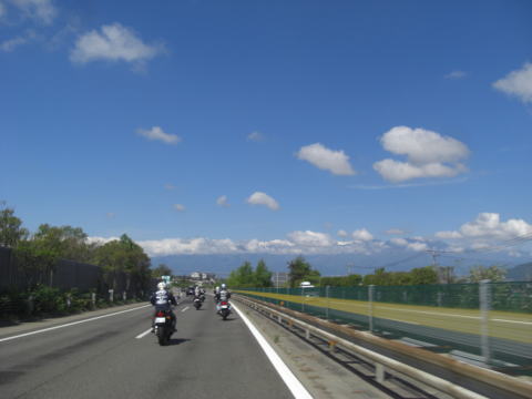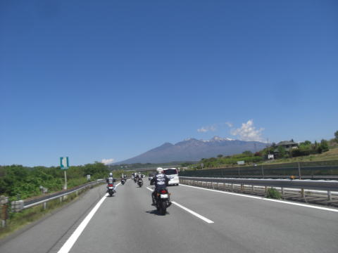 無事に全員そろったところで八ヶ岳に向って出発! 青空が眩しい!! |