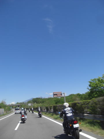 そこへ先頭のサトッチさんから無線が飛ぶ! 「後ろに富士山がキレイに見えてますよ!ミラーでみてね~~」 何!?富士山! |