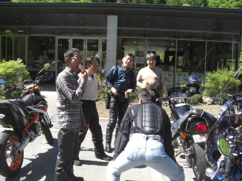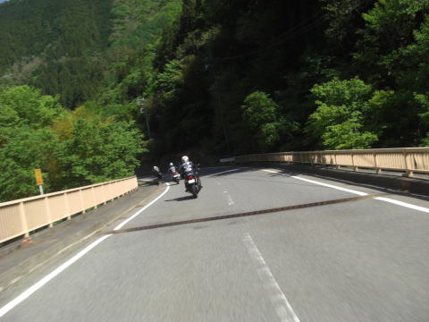 水分補給もしっかり取ってラストランにデッパツ!! 上野村周辺の道はキレイで走りやすい! 新緑の時期にこの山深い群馬を走れるって贅沢かもしれませんね。 |