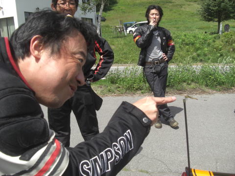 我々ノーマルキャブレターの車輌には問題ない場所なんですが、右端のお三方には酸素が足りず、コーナーの度に「ボボボッボ・・・」と怪しい排気音とともに、必要以上にバンクする車体。