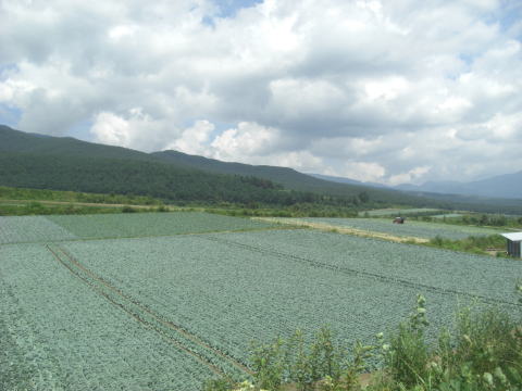 キャベツ畑も圧巻ですが、バックには百名山の四阿山が鎮座する絶好のロケーションなんです。