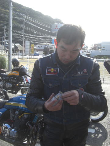 コンビニでちょっと早めの休憩か?と思っていたら、サトッチさんのバルブが切れてたらしく急遽の修理タイムでした。 |
