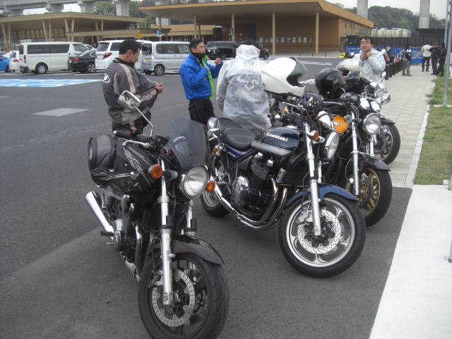 外車、SS、ゼファーなどの混成チームや、一匹狼のフルカスタム乗り、林道狙いのオフローダーなど賑やかな光景ですよ。