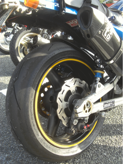 ピレリの何チャラというハイグリップタイヤなのですが、ほとんど溝がありません!ホントに公道を走ってもいいのか!?